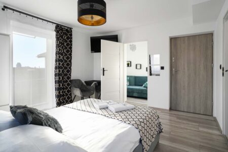 Wybrane apartamenty posiadają osobno zamykaną sypialnie.